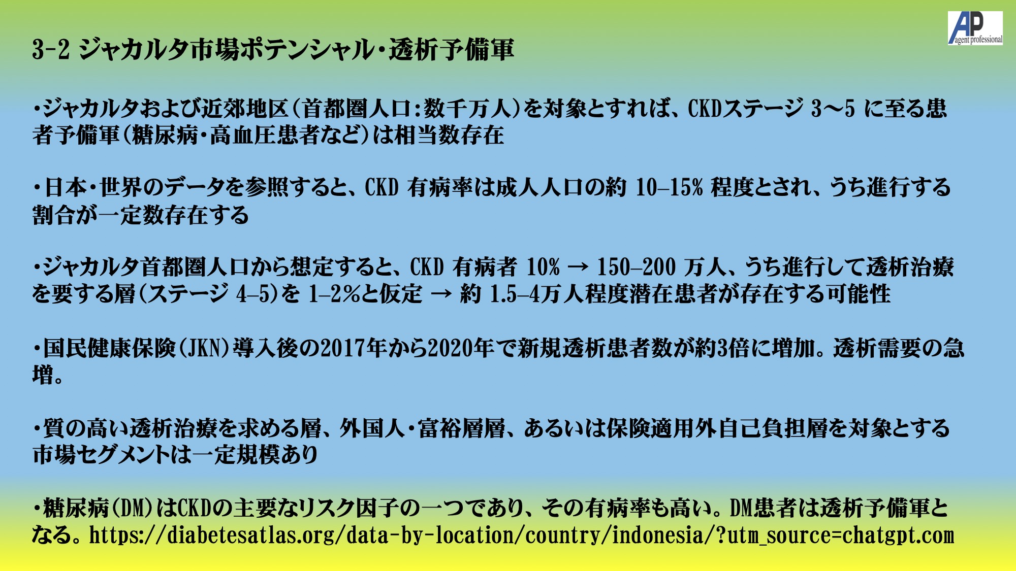 そこで当社ではインドネシアで透析施設を開設する事業を計画しております。下記の通りご案内します。